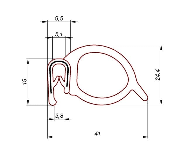 Zabezpieczenia krawędzi są używane, gdy stalowe krawędzie muszą być gładkie. Dodatkowa obróbka metalu nie jest potrzebna. Uzyskuje się efekt ozdobny. Profile chroniące krawędzie są elastyczne. Wpinana taśma stalowa w kształcie litery U z osłoną z PVC umożliwia trwałe osadzenie na metalowych krawędziach, nawet w przypadku łuków lub zagięć.Profil, osłona krawędzi jest w prosty sposób wciskany ręcznie w metalową krawędź, dzięki czemu nie trzeba używać narzędzi, klejów i złączy. Profile, taśmy chroniące krawędzie różnią się kształtem, rozmiarem, kolorem i powierzchnią w zależności od przeznaczenia.Materiał: uszczelka krawędziowa PVC w kolorze czarnym z rdzeniem ze stali sprężynowej połączona z bąblem pianka EPDM. Profil gumowy odpowiedni do krawędzi od 2 do 4,5 mm