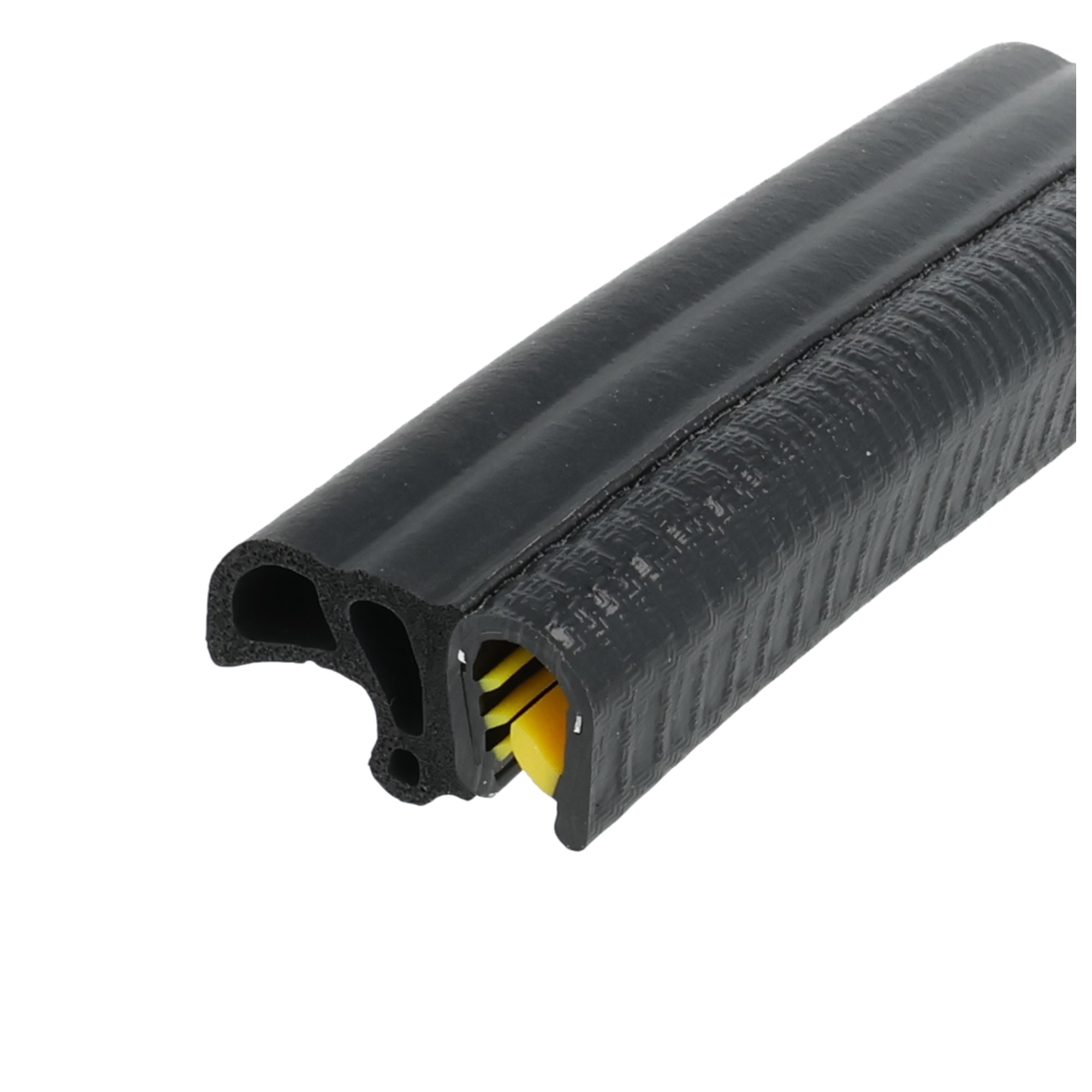 Zabezpieczenia krawędzi są używane, gdy stalowe krawędzie muszą być gładkie. Dodatkowa obróbka metalu nie jest potrzebna. Uzyskuje się efekt ozdobny. Profile chroniące krawędzie są elastyczne. Wpinana taśma stalowa w kształcie litery U z osłoną z PVC umożliwia trwałe osadzenie na metalowych krawędziach, nawet w przypadku łuków lub zagięć.Profil, osłona krawędzi jest w prosty sposób wciskany ręcznie w metalową krawędź, dzięki czemu nie trzeba używać narzędzi, klejów i złączy. Profile, taśmy chroniące krawędzie różnią się kształtem, rozmiarem, kolorem i powierzchnią w zależności od przeznaczenia.Materiał: uszczelka krawędziowa PVC w kolorze czarnym z rdzeniem ze stali sprężynowej połączona z bąblem pianka EPDM. Profil gumowy odpowiedni do krawędzi od 4 do 7 mm