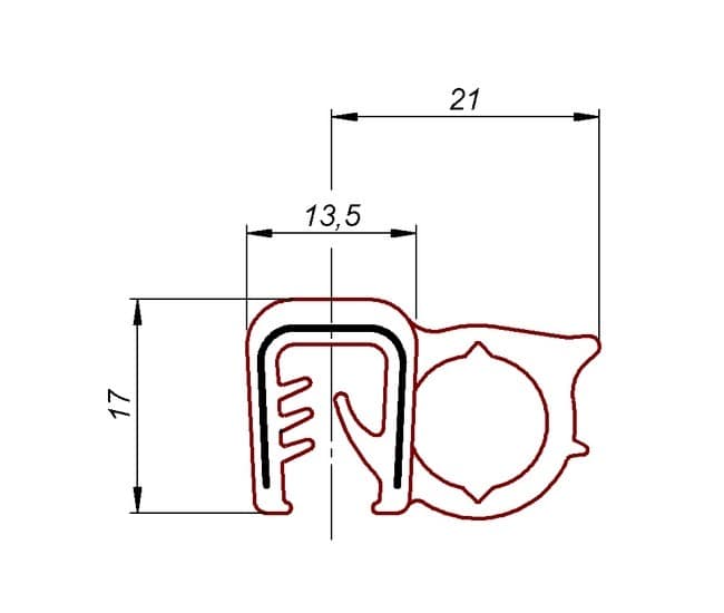 Zabezpieczenia krawędzi są używane, gdy stalowe krawędzie muszą być gładkie. Dodatkowa obróbka metalu nie jest potrzebna. Uzyskuje się efekt ozdobny. Profile chroniące krawędzie są elastyczne. Wpinana taśma stalowa w kształcie litery U z osłoną z PVC umożliwia trwałe osadzenie na metalowych krawędziach, nawet w przypadku łuków lub zagięć.Profil, osłona krawędzi jest w prosty sposób wciskany ręcznie w metalową krawędź, dzięki czemu nie trzeba używać narzędzi, klejów i złączy. Profile, taśmy chroniące krawędzie różnią się kształtem, rozmiarem, kolorem i powierzchnią w zależności od przeznaczenia.Materiał: uszczelka krawędziowa PVC w kolorze czarnym z rdzeniem ze stali sprężynowej połączona z bąblem pianka EPDM. Profil gumowy odpowiedni do krawędzi od 3 do 6 mm
