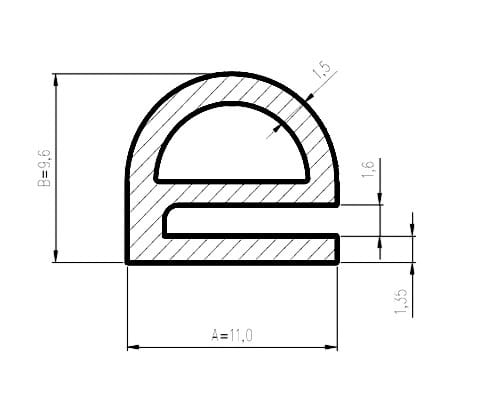 Profil silikonowy o przekroju e, termiczny, twardość 60 Sha.