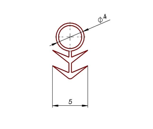 Uszczelka silikonowa do sauny. Profil silikonowy wciskany w futrynę drzwi. Uszczelka silikonowa o średnicy 4 mm i szerokości „choinki” 5 mm. Dostępne kolory brązowa.