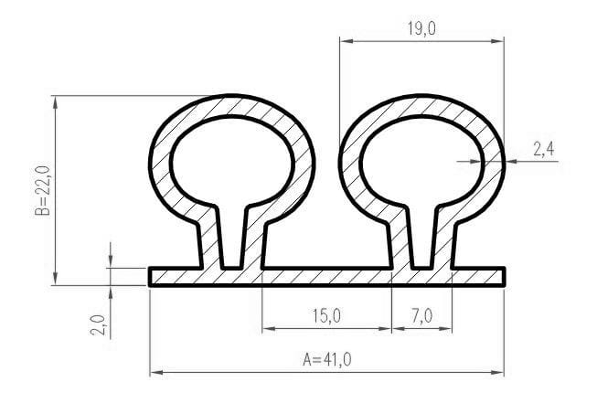 Profil silikonowy czarny typ B. Uszczelka silikonowa B 22×41 mm. Materiał czarny silikon.