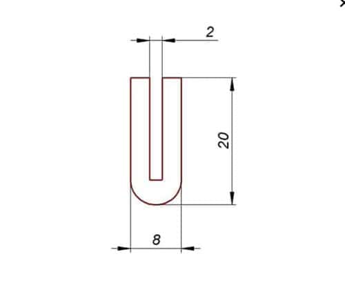 Uszczelka silikonowa na krawędź 2 mm. Profil silikonowy czarny  20 x 8 mm. Dostępne kolory według tabeli RAL. Posiada atest FDA na kontakt z żywnością.