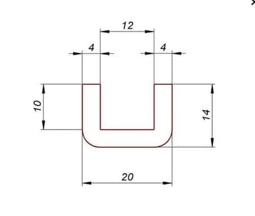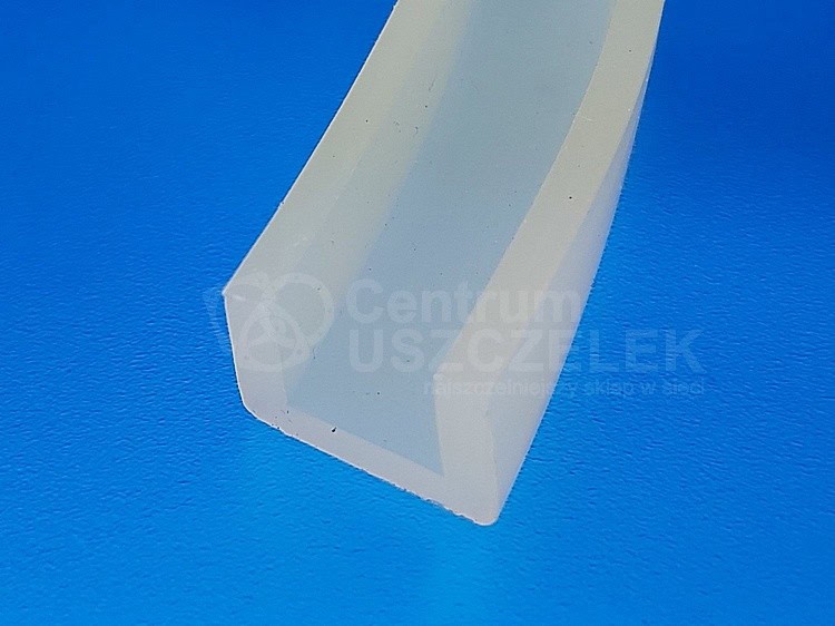 Uszczelka silikonowa na krawędź 12 mm. Profil silikonowy transparentny 14 x 20 mm. Kolor transparentny.