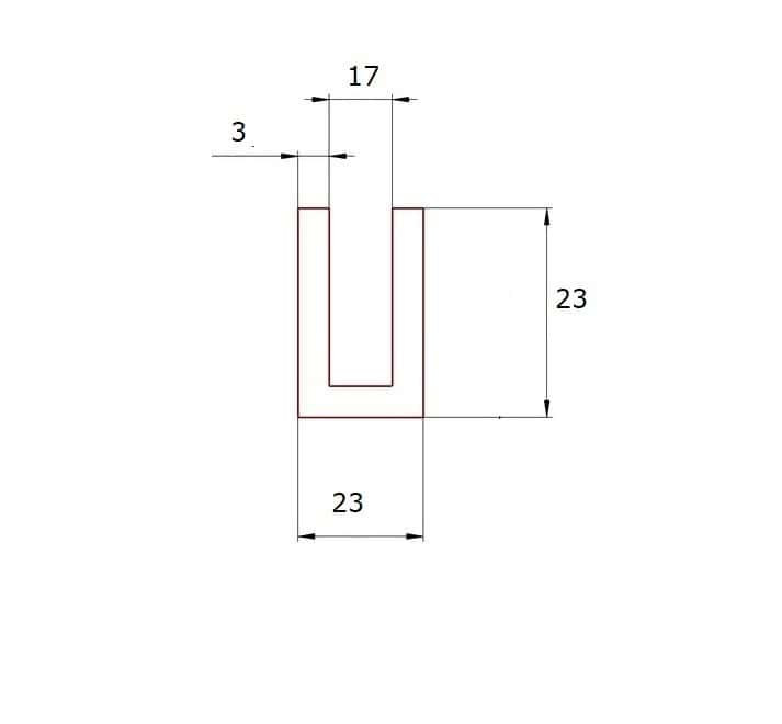 Uszczelka typ U 23x23x17 mm ścianka 3mm transp. 0231314