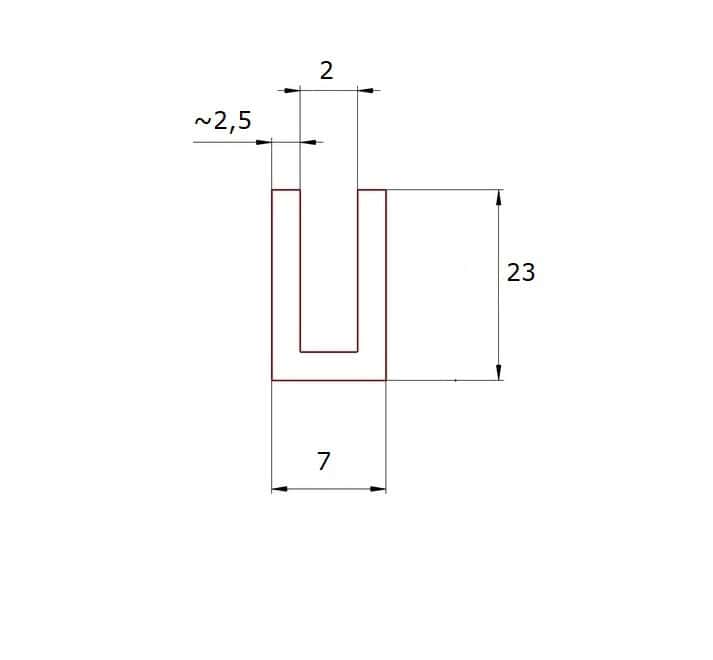 Uszczelka typ U 23x7x2mm ścianka 2,5mm transp. 0231311