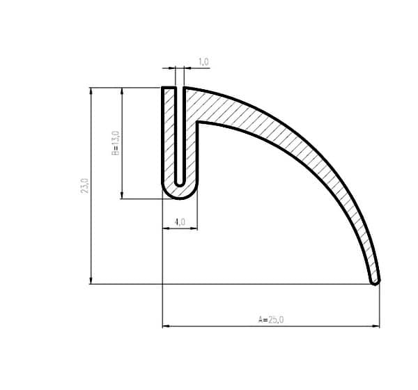 Uszczelka silikonowa mleczny transparent, typ U z wargą na krawędź 1 mm, odporność 180° C, twardość 60 ShA