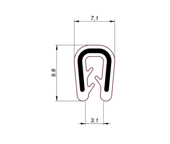 Profile wpinane posiadają właściwości profili chroniących krawędzie i profili uszczelniających. Twardość według Shora 60. Tolerancja według DIN 3302-1 E2. Powierzchnia zacisku wykonana została z czarnego silikonu z nierdzewnym wkładem. Odpowiednia do krawędzi 0,5 – 2,5 mm kolor czarny.