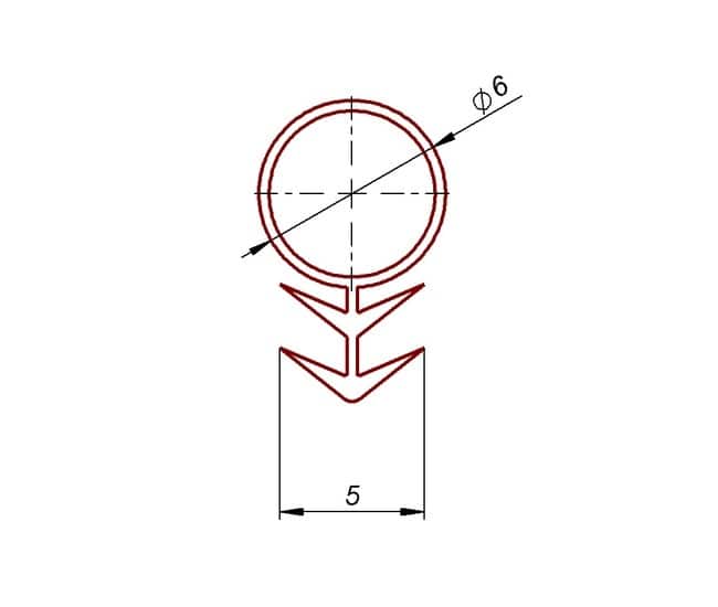Uszczelka silikonowa do sauny brązowa. Profil silikonowy wciskany w futrynę drzwi. Uszczelka silikonowa o średnicy 6 mm i szerokości „choinki” 5 mm.