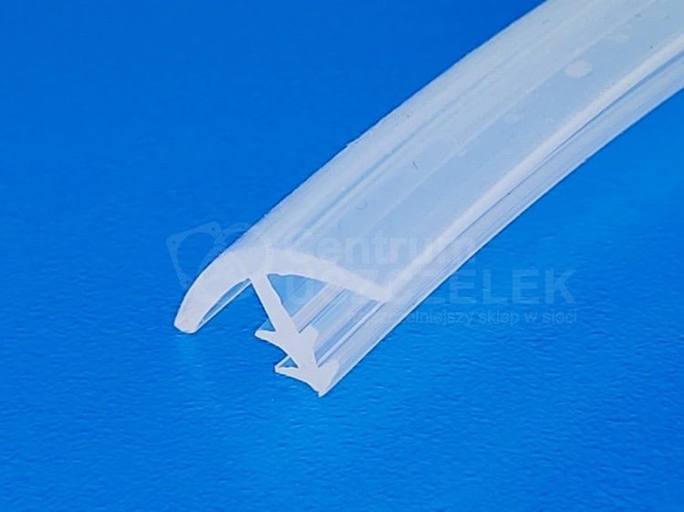 Profil silikonowy wciskany we frez. Uszczelka silikonowa transparentna o twardości około 60  +/- 5 Sh. Profil silikonowy, bezbarwny maskujący szczelinę, uszczelka typ T silikon bezbarwny wsuwany w prowadnicę, maskujący.