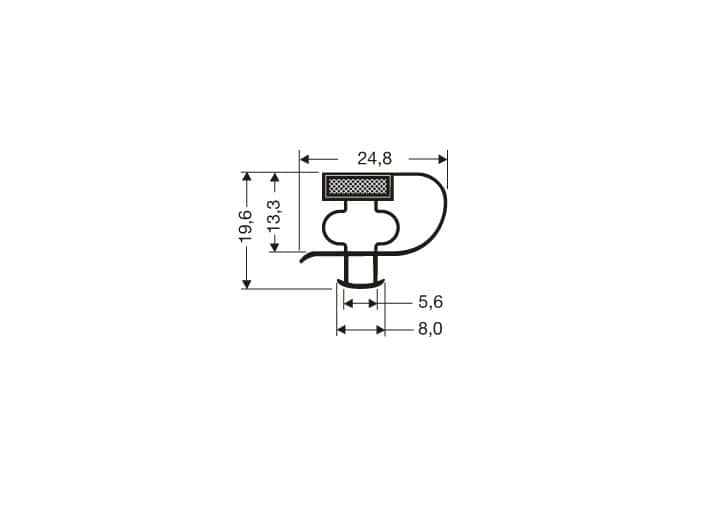 Uszczelka do drzwi lodówki z magnesem 24,8 x 19,6mm L – 2,55m szara – 32-3235