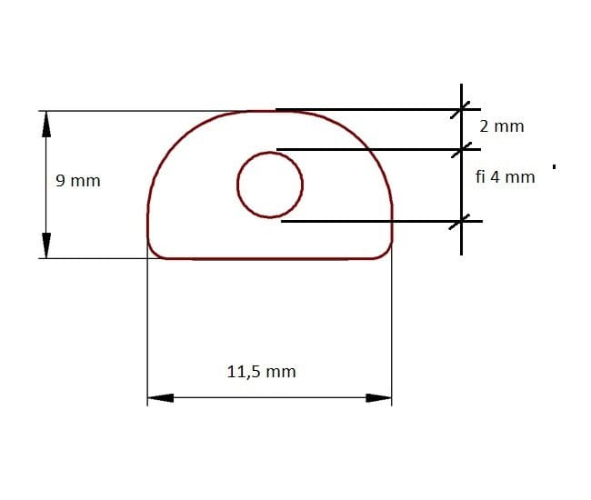 Profil silikonowy o przekroju kopułki 11,5 x 9 mm. Silikon lity, transparentny.