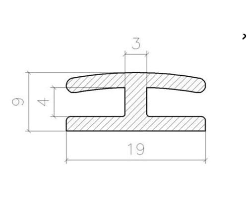 Uszczelka PVC typ H na krawędź 4 mm. Grubość ścianek uszczelki około 2,5 mm. Materiał uszczelki typ H to elastycznego PVC.