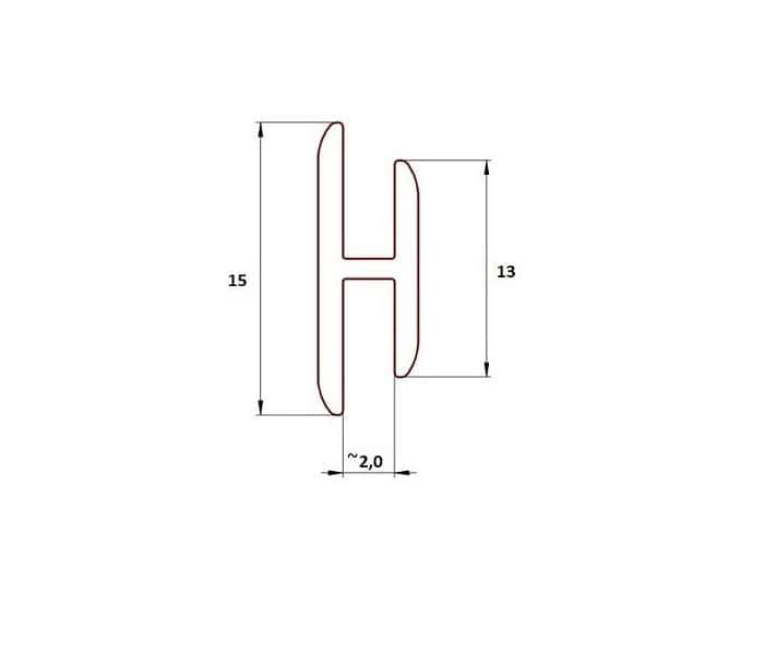 Uszczelka PVC typ H 15/13 na krawędź 2mm antracyt RAL7016. Materiał uszczelki typ H to plastyczne PVC, 70 Sha.