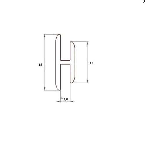Uszczelka PVC typ H 15/13 na krawędź 2mm czarna. Materiał uszczelki typ H to plastyczne PVC, 70 Sha.