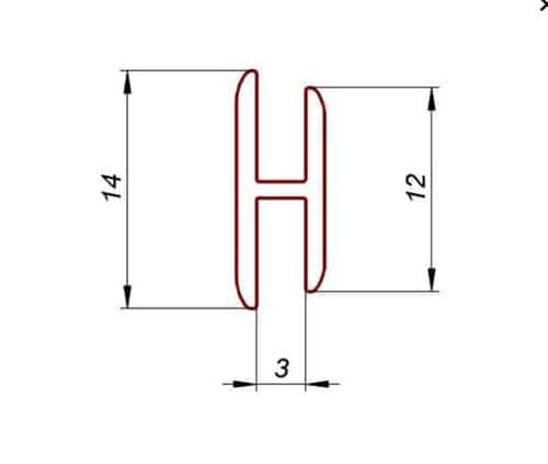 Uszczelka PVC typ H. Grubość ścianek uszczelki około 2,5 mm. Materiał uszczelki typ H to plastyczne PVC.