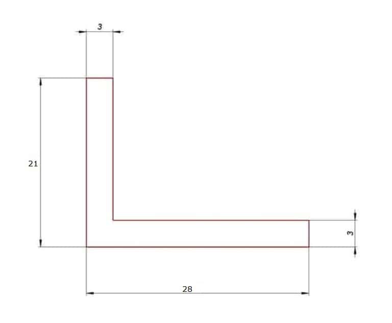 Kątownik gumowy czarne EPDM, grubość ścianek 3 mm, kąt < 90⁰ = zgięcie do wewnątrz, twardość około 65 +/- 5 Sh. Tolerancja wymiarowa zgodna z DIN ISO 3302-1 E2.