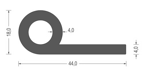 Podstawowa uszczelka wpinana do pokryw, drzwi i paneli wykonana z EPDM. Montaż uszczelki gumowej jest bardzo prosty – uszczelki te są po prostu wciskane pod krawędź blachy. Uszczelki w razie konieczności mogą być klejone. Profil uszczelniający z czarnego EPDM fi 18 mm o twardości Shore A 65°