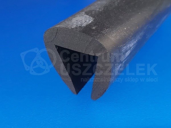 Czarna uszczelka EPDM do zabezpieczania krawędzi ostrych max grubości 16 mm, nakładana. Profil gumowy nie jest zbrojony, zachodzi na krawędź około 21 mm. Materiał czarne EPDM 85 +/- 5° Shore.