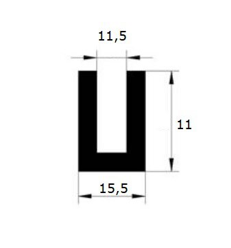 Czarna uszczelka EPDM do zabezpieczania krawędzi ostrych max grubości 11,5 mm, wciskana. Profil gumowy nie jest zbrojony, zachodzi na krawędź około 9 mm. Materiał czarne EPDM 70° Shore.