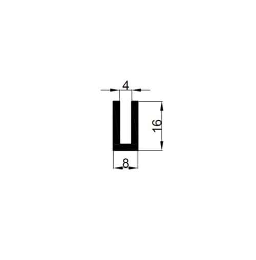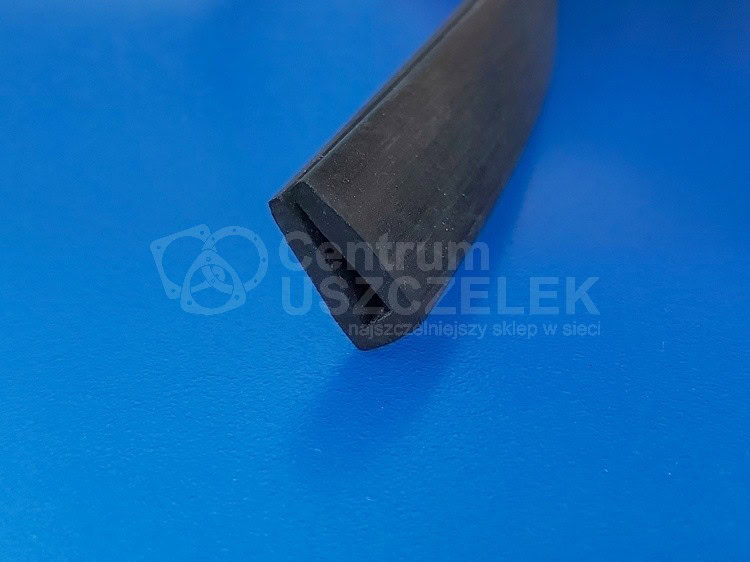Czarna uszczelka EPDM do zabezpieczania krawędzi ostrych max grubości 4 mm, wciskana. Profil gumowy nie jest zbrojony, zachodzi na krawędź około 12 mm. Materiał czarne EPDM 70° Shore.