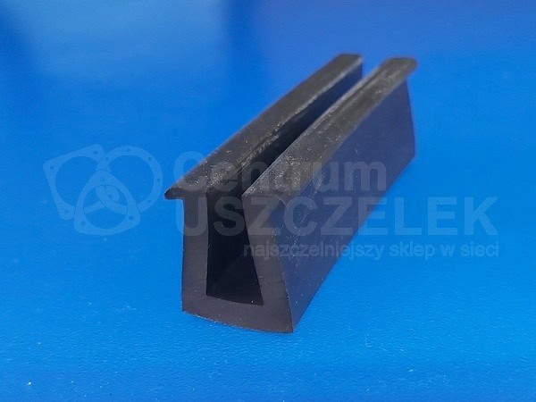 Czarna uszczelka EPDM do zabezpieczania krawędzi ostrych max grubości 8 mm, wciskana. Profil gumowy nie jest zbrojony, zachodzi na krawędź około 15 mm. Materiał czarne EPDM 70° Shore.