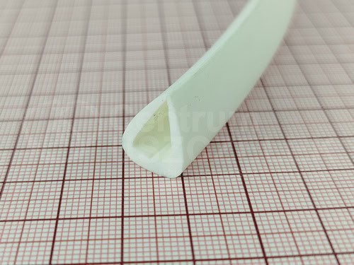 Biała uszczelka PVC do zabezpieczania krawędzi ostrych o max grubości 8 mm, wciskana, cena za mb. Ta osłona krawędzi wykonana została z plastycznego PVC charakteryzującego się wysoką elastycznością. Profil PVC nie jest zbrojony, zachodzi na krawędź około 17 mm.