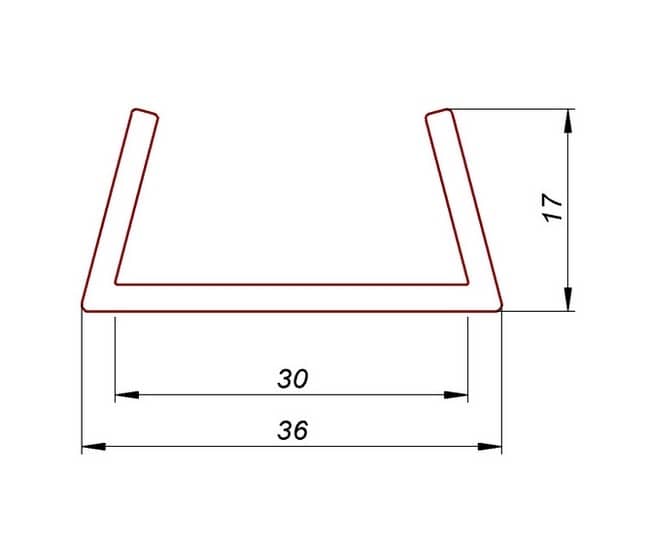 Czarna uszczelka gumowa do zabezpieczania krawędzi o grubości 30 mm, wciskana. Ta osłona krawędzi wykonana została z elastomeru. Profil gumowy nie jest zbrojony, zachodzi na krawędź około 14 mm, grubość ścianek 3 mm.