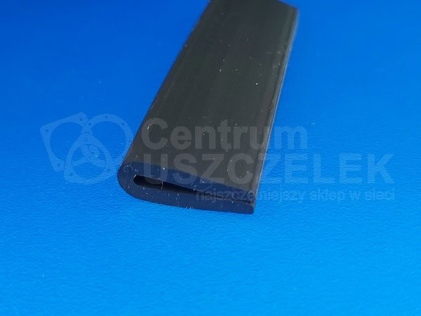 Czarna uszczelka gumowa do zabezpieczania krawędzi ostrych o max grubości 2 mm, wciskana, cena za mb. Ta osłona krawędzi wykonana została z PCV charakteryzującego się wysoką elastycznością. Profil gumowy nie jest zbrojony, zachodzi na krawędź około 17 mm.