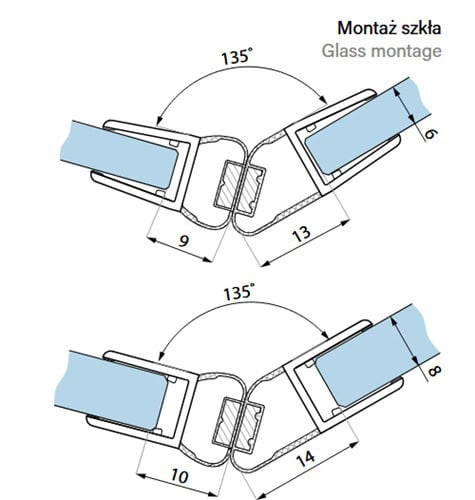 Uszczelka drzwi kabiny prysznicowej z profilem magnetycznym. Uszczelka drzwi kabin prysznicowych o grubości szkła 6 + 8 mm.