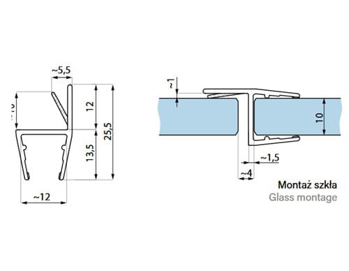 Uszczelka drzwi kabiny prysznicowej. Uszczelka drzwi kabin prysznicowych o grubości szkła 10 mm.