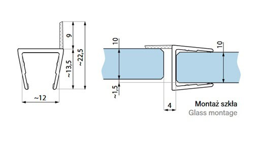 Uszczelka drzwi kabiny prysznicowej. Uszczelka drzwi kabin prysznicowych o grubości szkła 10 mm.