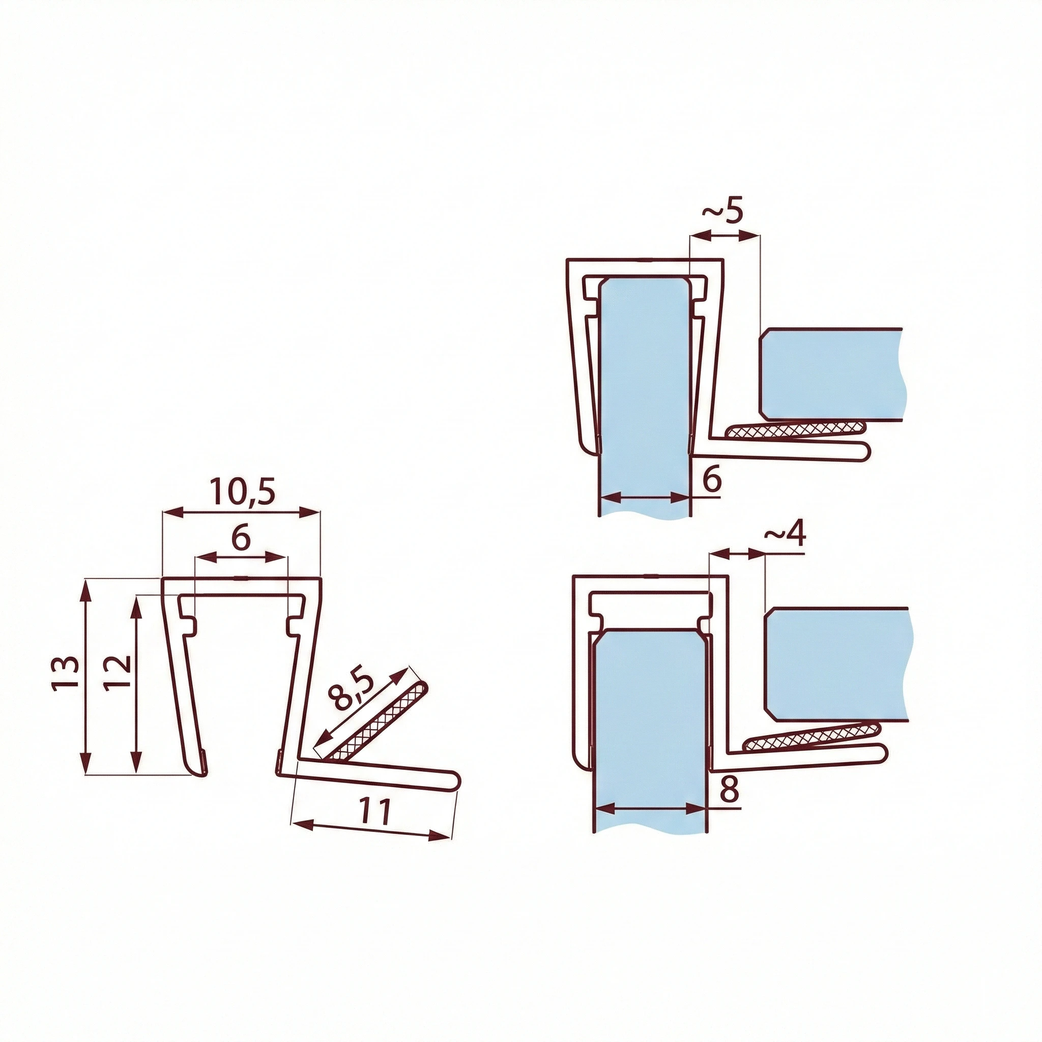 Uniwersalność: specjalnie zaprojektowany profil pozwala na montaż na taflach szkła o grubości 6 mm oraz 8 mm.