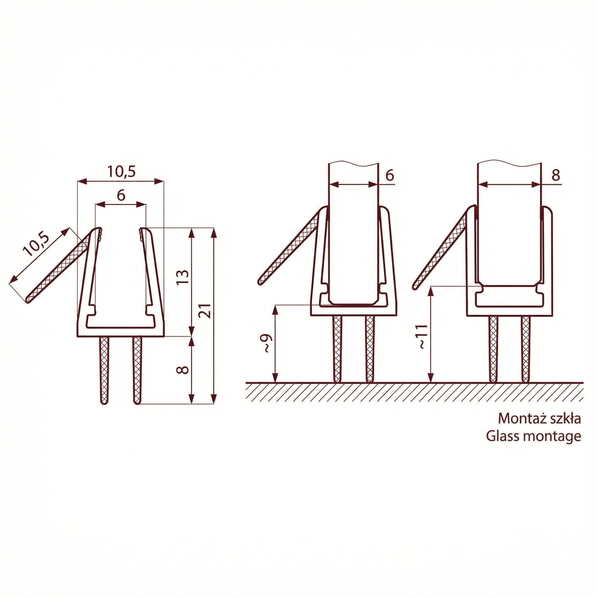 Stabilność: wewnętrzne wypustki profilu zapewniają mocne przyleganie do szyby, eliminując konieczność stosowania kleju lub silikonu.