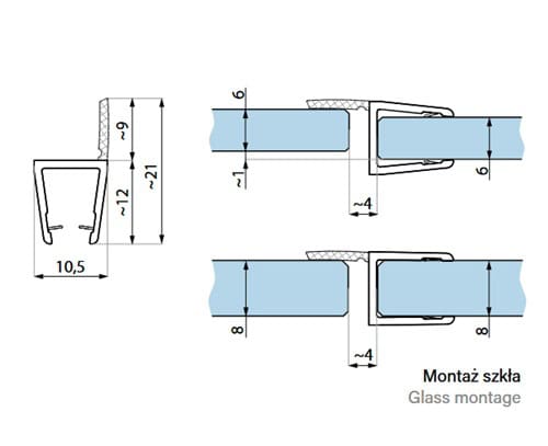Uszczelka drzwi kabiny prysznicowej. Uszczelka drzwi kabin prysznicowych o grubości szkła 6 + 8 mm.