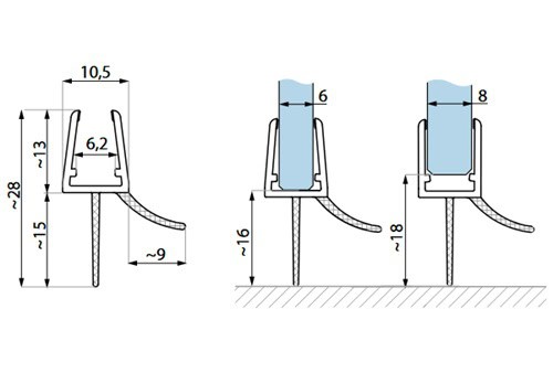 Uszczelka drzwi kabiny prysznicowej z okapnikiem. Uszczelka drzwi kabin prysznicowych o grubości szkła 6 + 8 mm.